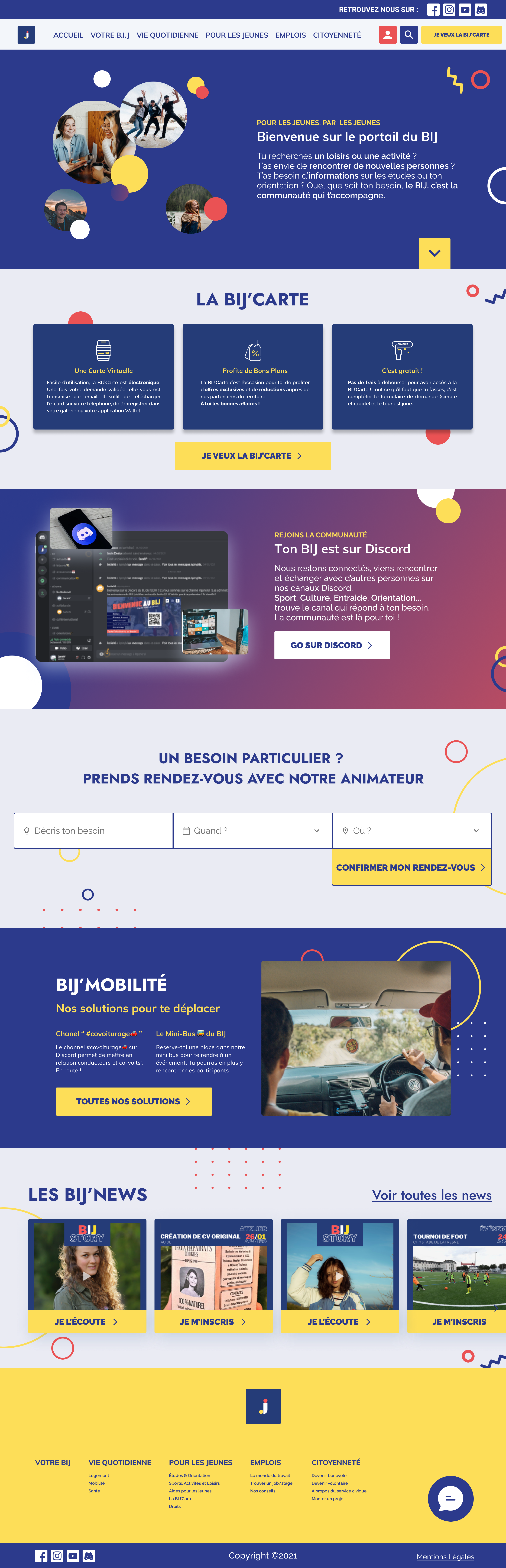 Comme explicité, la création du BIJ repose sur la création d’un site internet. Nous avons imaginé une maquette avec les différentes informations qui pourraient y paraître. Retrouvez ici un apercu de notre création.