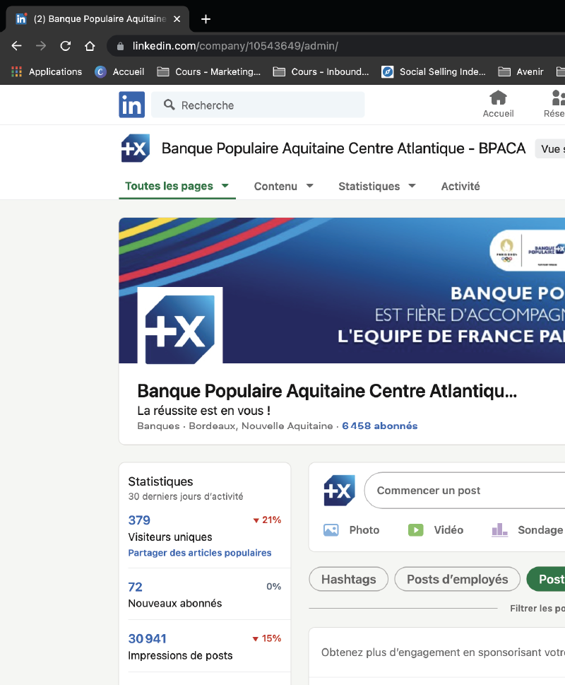 Cette année, dans un tout autre cadre que celui de l’agence Enhance Digital, c’est la Banque Populaire Aquitaine Centre Atlantique et plus particulièrement la Direction de la Communication Externe et Institutionnelle qui m’a accueillie.